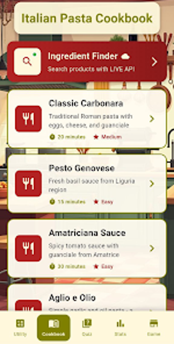 Användare kan också testa sina kunskaper genom fyra tematiserade quiz med totalt 40 frågor, och följa sin utveckling med en statistikspårare. Dessutom erbjuder appen en restaurang tycoon-spel där användare kan bygga och driva sin egen pasta-restaurang. Med en vacker design som skapar en autentisk italiensk atmosfär, är Anaria Pastalino en perfekt följeslagare för alla som älskar italiensk matlagning och interaktiva spel.
